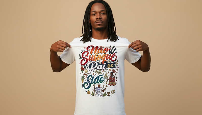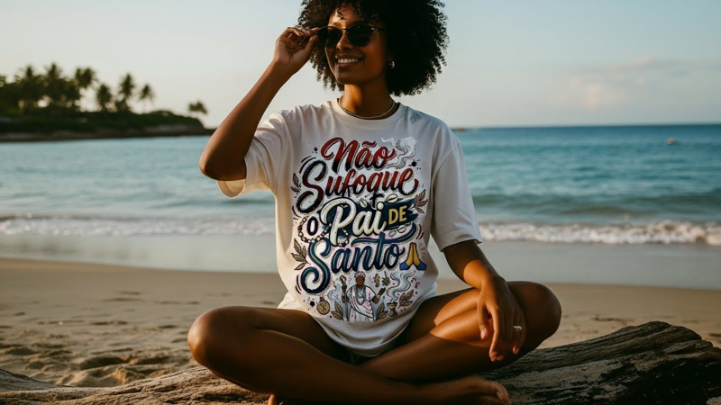 "Não Sufoque o Pai de Santo". Uma frase que ecoa nos terreiros e que todo filho de santo já ouviu (ou deveria ouvir). Esta peça da coleção Frases traz, com humor e muito estilo, um lembrete essencial: o sacerdote é o guardião do Axé, mas também é humano. A estampa vibrante ilustra a figura do Babalorixá com seus fios de conta e seu cajado, cercado por búzios e folhas sagradas. É a camiseta ideal para quem vive o dia a dia da religião e entende que o respeito ao tempo do sagrado é fundamental. Qualidade Orin: Feita para durar e impressionar. Confeccionada em Algodão Premium, esta peça oferece um toque extremamente macio e uma estrutura superior, garantindo conforto absoluto e alta durabilidade sem perder a leveza. A modelagem oversized traz a contemporaneidade do Axé Urbano, permitindo que você vista sua fé com elegância, liberdade de movimento e personalidade. Respeite o Sacerdote. Valorize o Axé. Afinal, quem cuida de nós também precisa de cuidado.