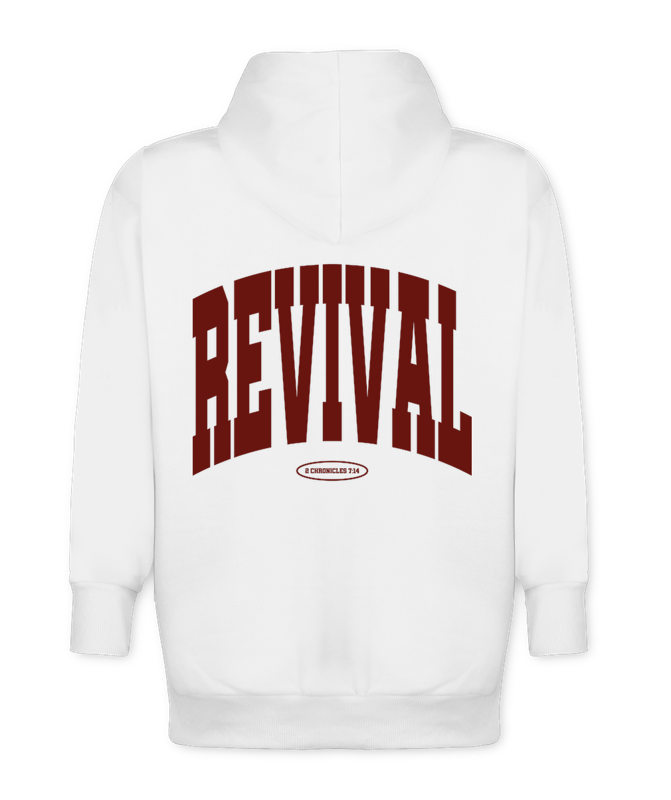 Onde a estética das universidades clÔssicas encontra o peso do avivamento. O Hoodie Revival é a peça mais robusta da LUMN, projetada para enfrentar o frio rigoroso sem perder a silhueta quadrada e imponente do streetwear. O contraste do vermelho vibrante sobre o branco puro simboliza a vida e a restauração de 2 CrÓnicas 7:14.